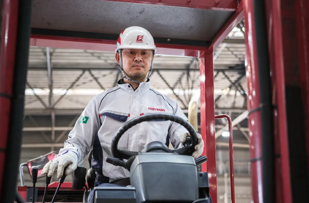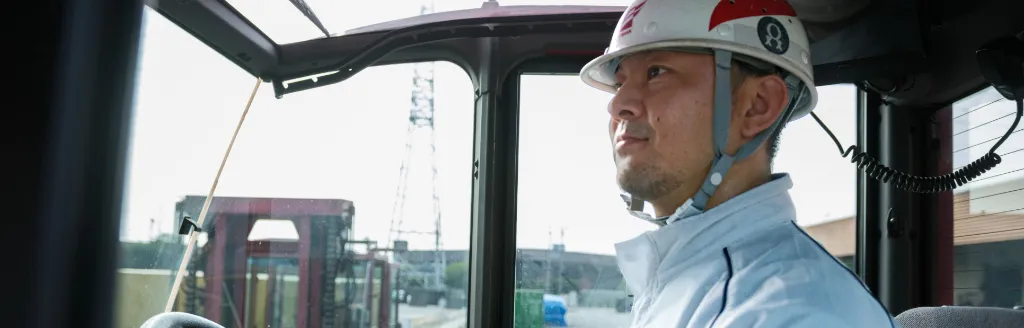 私の仕事はフォークリフトや大きな重機に乗って、倉庫内外で貨物を荷役する仕事です。お客様の大事な貨物を取り扱うのは緊張しますが、やりきったときに達成感を感じるのが僕のやりがいかなと思います。大きな重機を操作することも楽しいなっていつも思いますし、そういったところがモチベーションになったりしますね。