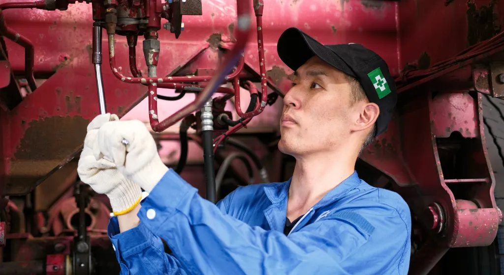 整備の仕事に魅力を感じた転職を考えていた時にこの会社の求人情報を見つけ、グループ全体の事業内容に興味を持ちました。前職も自動車整備士をしていて、グループで保有する大型車輌などの整備事業は、今まで経験した普通車の整備とは一味違い、奥深く、これまでの経験や知識を活かせて更にステップアップできると思い、強く惹かれました。